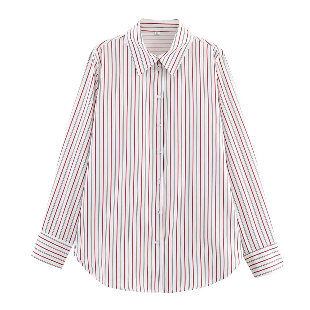 Custom Women Office Striped Shirt Poplin Button Down Blouse Loose Fit Commuter Wear Versatile Work Top Factory Direct Wholesale
